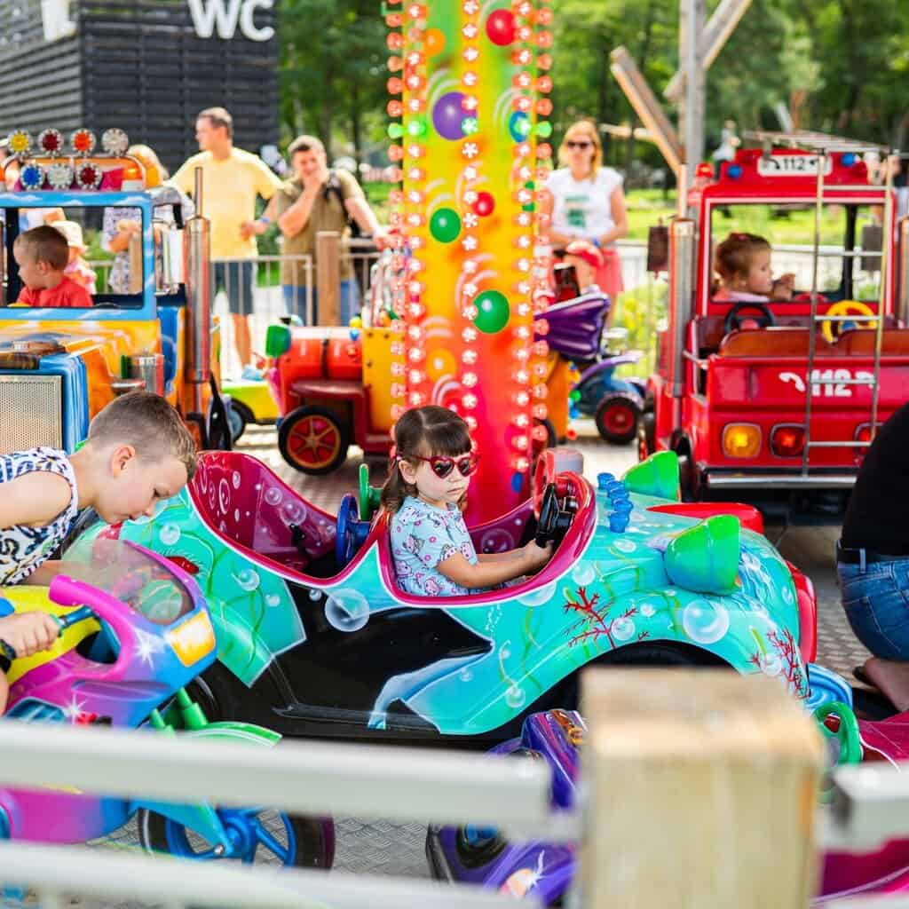 - All attractions are outdoors. They include a rope park (9 routes with a total of 1,486 meters and 184 circus obstacles), an inflatable playground (over a dozen inflatables, including a water slide, which is 12 m high and 30 m long – don’t forget to pack a change of clothes), mini golf course (18 holes), climbing wall, playground, an amusement park (roller coaster, autodrome, carousels).