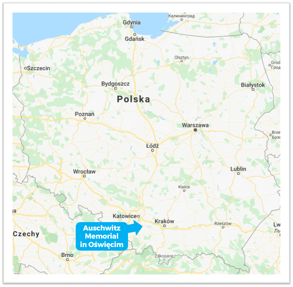 Oświęcim is a town in southern Poland. After the Third Reich attacked Poland, Oświęcim was incorporated into Germany (in October 1939). At that time, the Polish name of the town, Oświęcim, was changed to the German one – Auschwitz. In June 1940, the Third Reich established a concentration camp on the outskirts of Oświęcim, which they named Auschwitz. Two and a half kilometers from Auschwitz is the village of Brzezinka (the occupiers gave it the German name Birkenau), where in 1942 the second part of the camp was established, called Auschwitz II-Birkenau.
