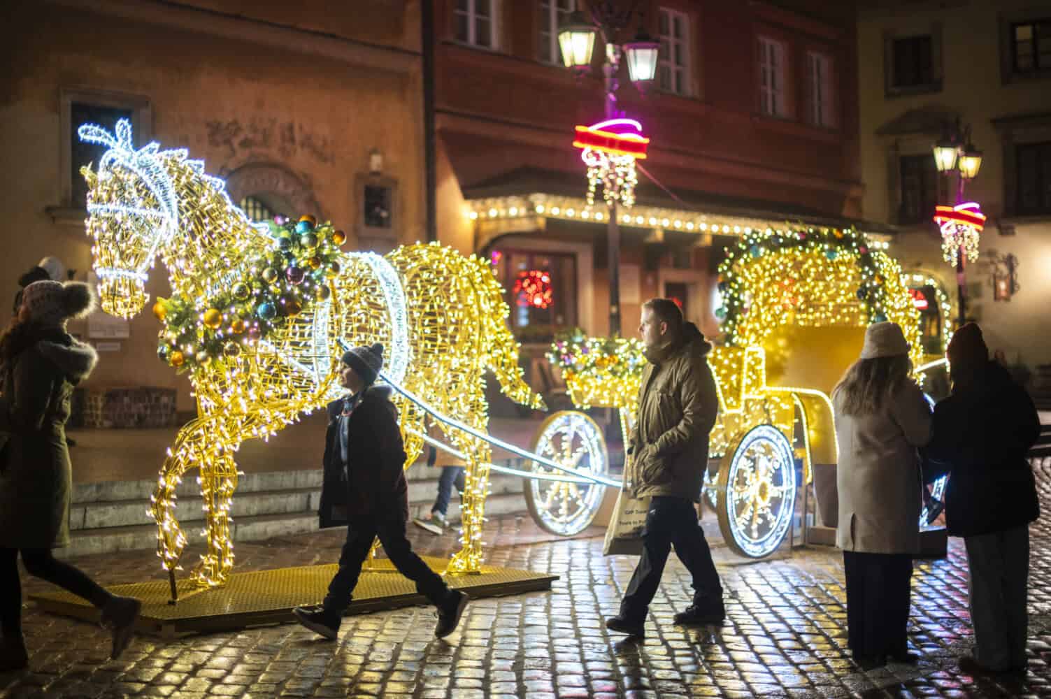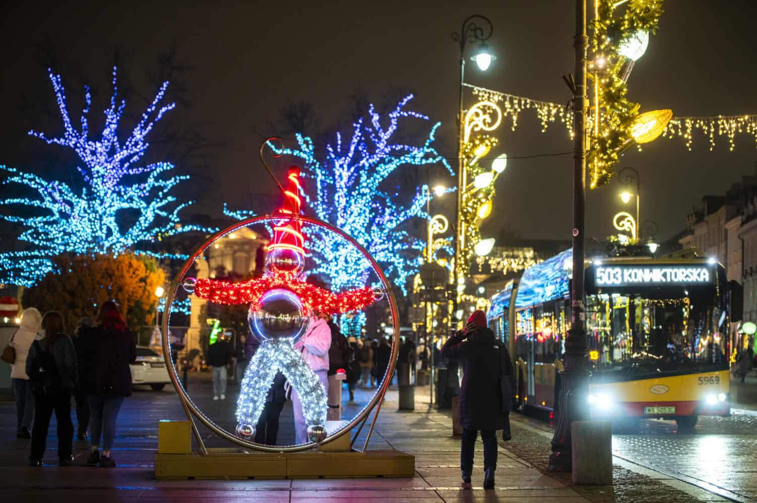 The lights are switched on starting from dusk. The main attractions focus on “The Royal Route”, from the Castle Square/Plac Zamkowy (including the Christmas tree), Krakowskie Przedmieście Street, Nowy Świat Street to the de Gaulle roundabout (Rondo de Gaulle’a). The Old Town is also decorated (including Piwna Street, Świętojańska Street, Old Town Square, Nowomiejska Street, Freta Street, New Town Square, Kościelna Street to Podzamcze). Find out more in our post on Warsaw’s illuminations.