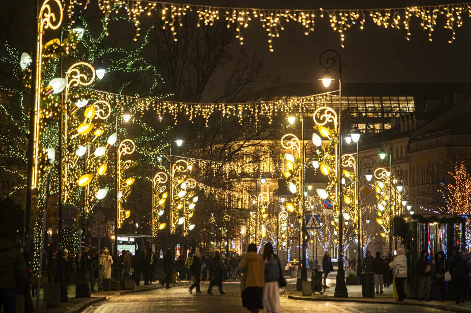 The Christmas tree and festive illuminations on the streets of Warsaw are lit on the first weekend of December and remain on until mid-February.